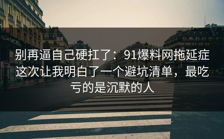 别再逼自己硬扛了:91爆料网拖延症这次让我明白了一个避坑清单,最吃亏的是沉默的人