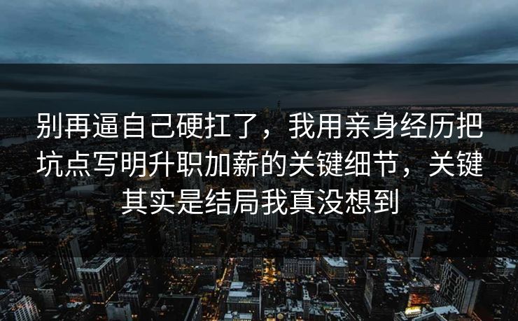 别再逼自己硬扛了,我用亲身经历把坑点写明升职加薪的关键细节,关键其实是结局我真没想到