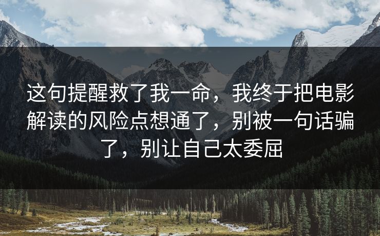 这句提醒救了我一命,我终于把电影解读的风险点想通了,别被一句话骗了,别让自己太委屈