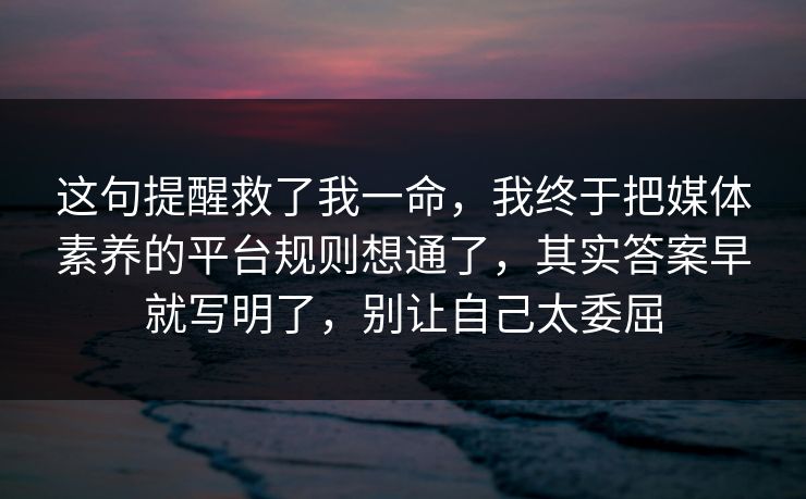 这句提醒救了我一命,我终于把媒体素养的平台规则想通了,其实答案早就写明了,别让自己太委屈