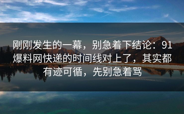 刚刚发生的一幕,别急着下结论:91爆料网快递的时间线对上了,其实都有迹可循,先别急着骂