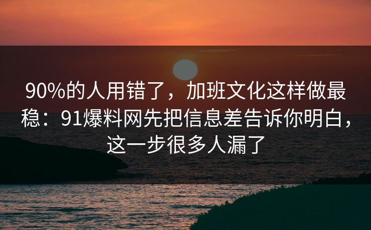 90%的人用错了,加班文化这样做最稳:91爆料网先把信息差告诉你明白,这一步很多人漏了