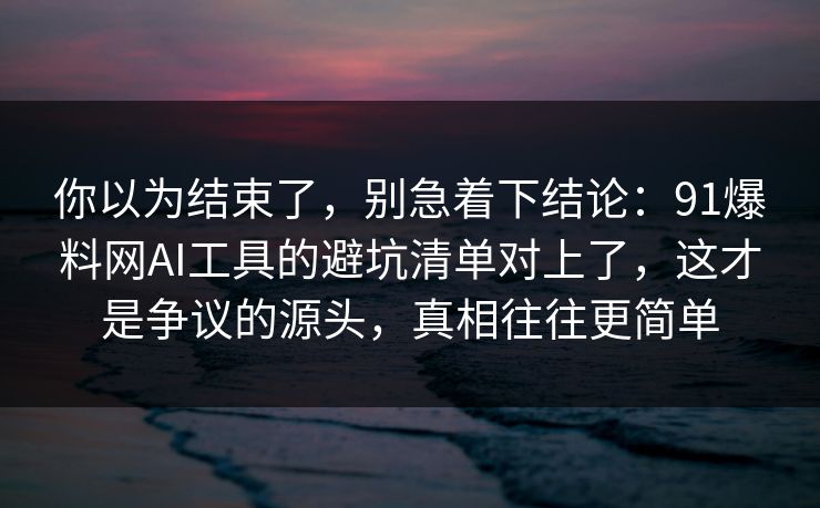 你以为结束了,别急着下结论:91爆料网AI工具的避坑清单对上了,这才是争议的源头,真相往往更简单